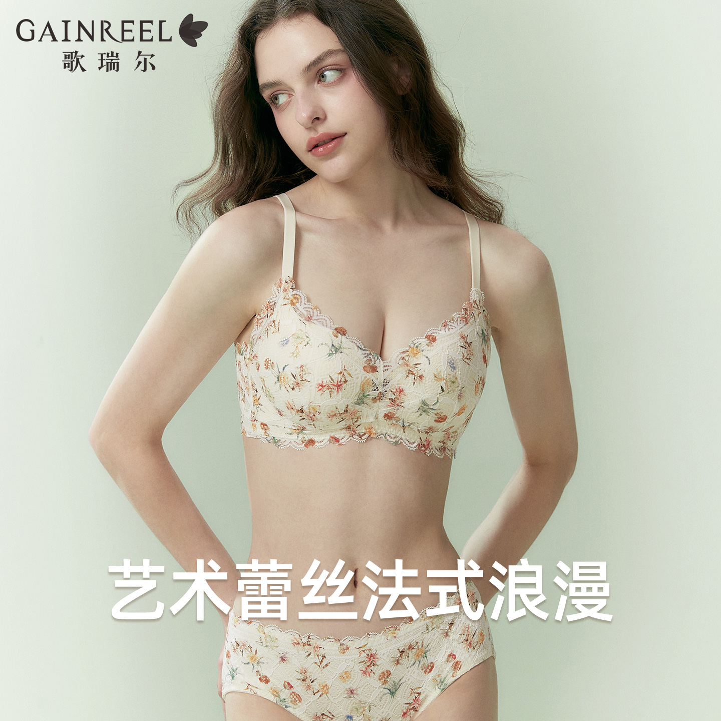 【裸感蕾丝】歌瑞尔性感碎花内衣女小胸聚拢法式纯欲防下垂文胸罩