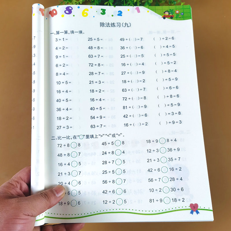 表内乘法有余数的除法小学数学专项训练二年级上册下册100道口算题卡天天练思维训练计算题强化训练应用题九九口诀表卡片练习看图