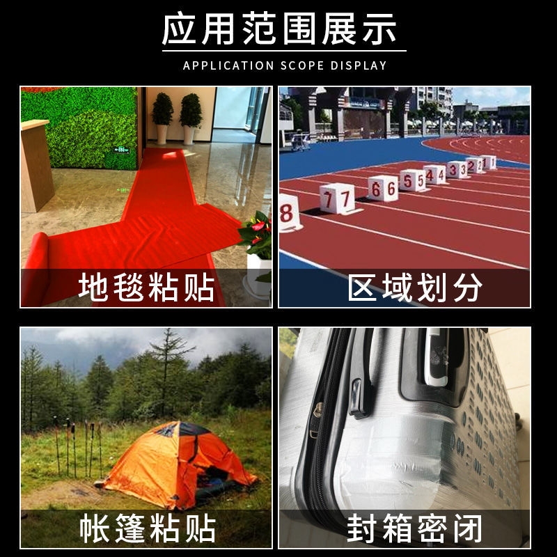 强力单面布基胶带高粘性50米加厚结婚红毯粘贴固定封边红色胶带耐磨易撕防水地膜装修保护用彩色胶布批发地毯