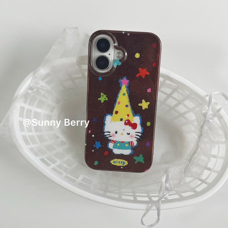 向日的浆果ins日韩小众秋冬手绘风可爱彩色星星波点猫咪适用苹果16pro手机壳iphone15promax/14/13保护套防摔
