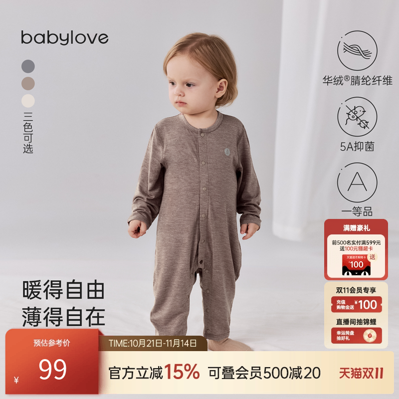 babylove婴儿连体衣秋冬居家轻薄保暖衣服宝宝睡衣纯色哈衣爬服