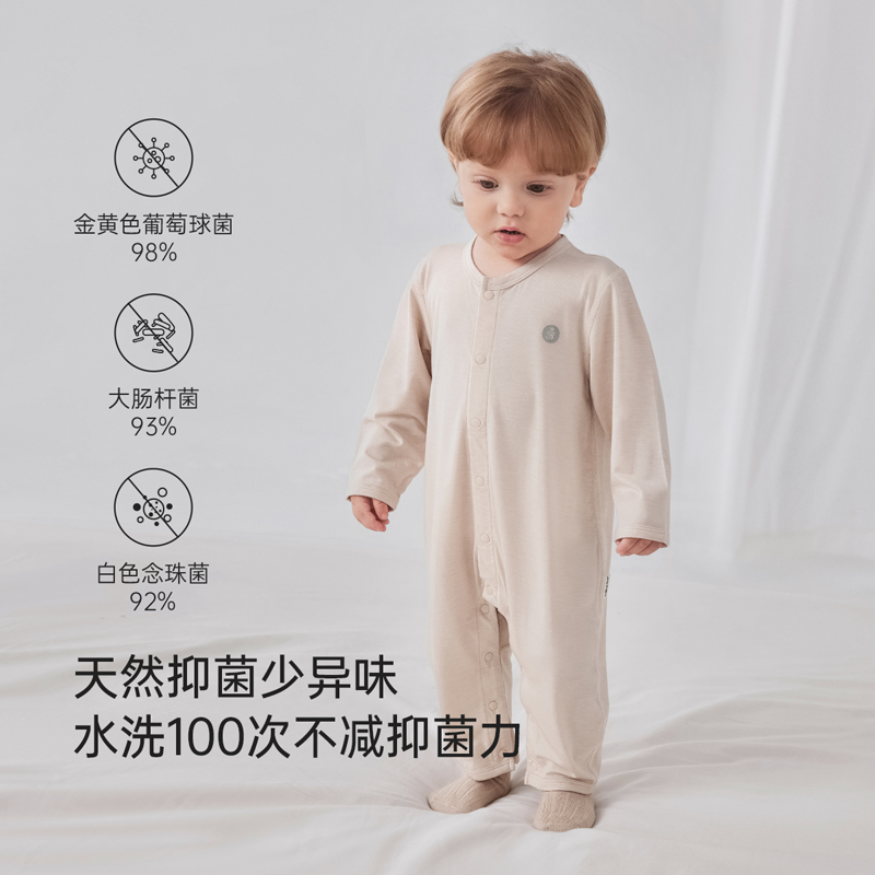 婴儿夏季连体衣莫代尔秋季新生婴儿宝宝衣服薄款睡衣长袖哈衣爬服