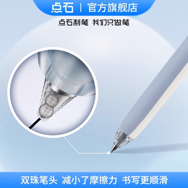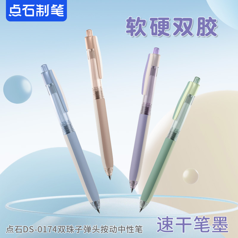 点石软硬双胶中性笔指尖温柔速干的笔芯替芯黑笔文具字成之笔高颜值按动压式学生专用双珠碳素大容量水性电时