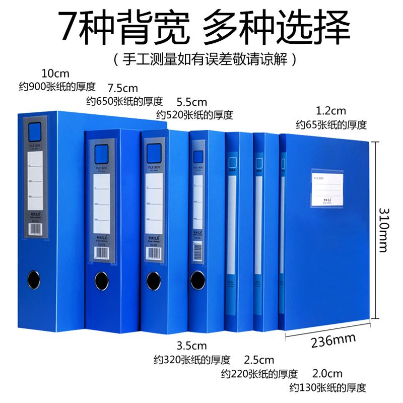 20个装晨光A4塑料档案盒资料册文件盒收纳盒子干部人事档案财务凭证盒资料盒文件夹35mm蓝色合同收纳办公用品