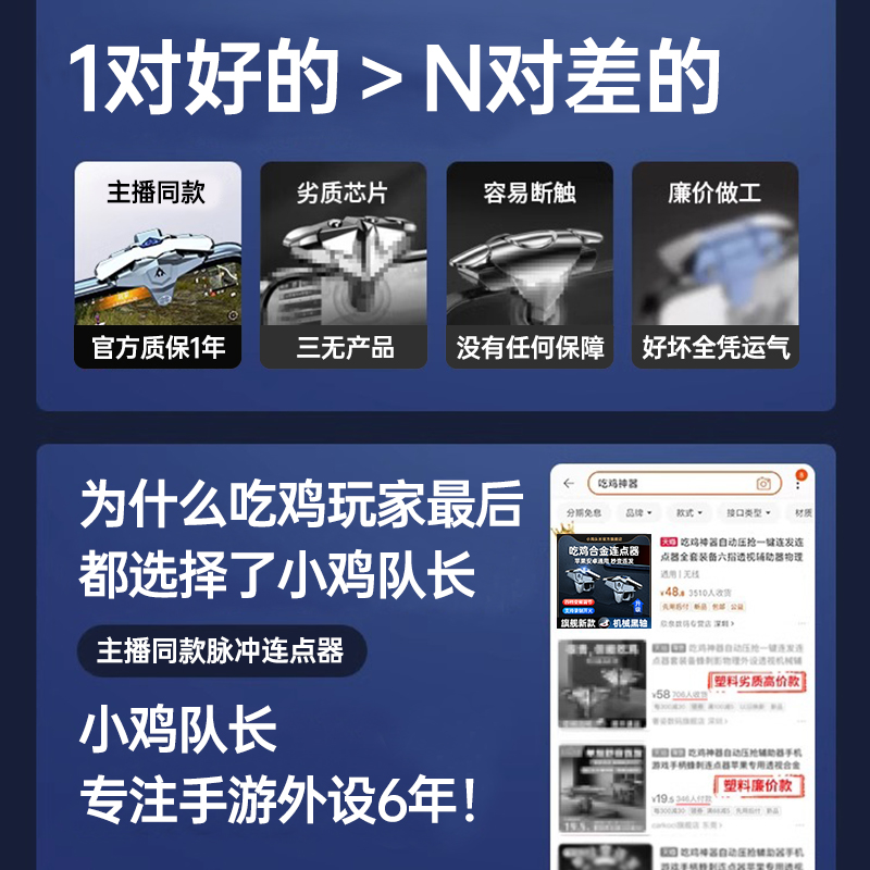 小鸡队长2025新款和平连点器精英手游外设变频物理按键苹果安卓神器吃鸡游戏手柄四指自动瞄准cfm开火