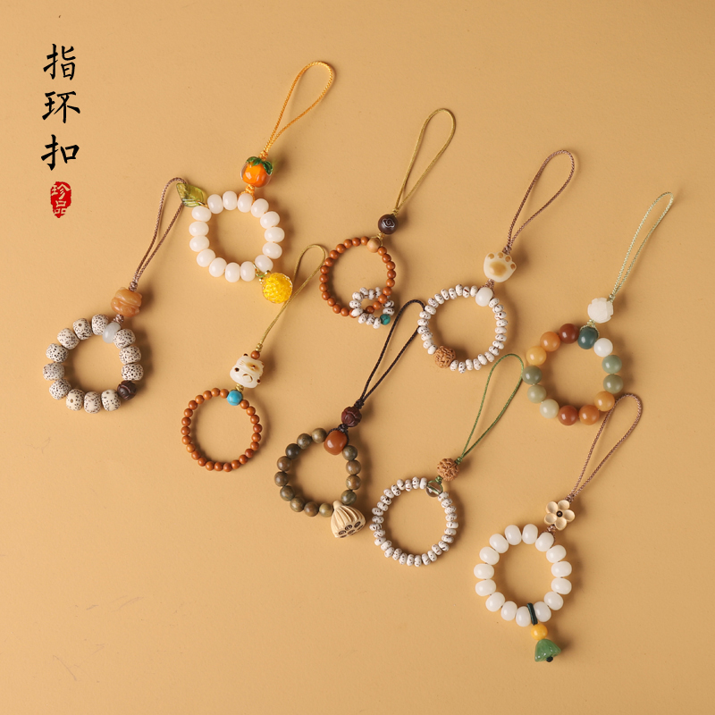 檀木手机指环扣 手机挂绳挂链u盘挂饰男女款手机环指扣招财猫挂件