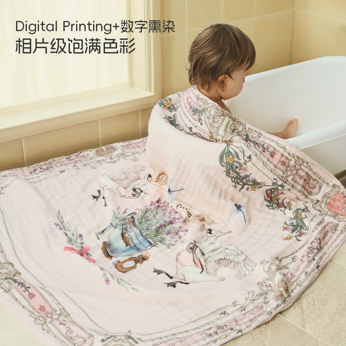 婧麒婴儿浴巾纯棉纱布全棉超软吸水宝宝儿童大毛巾初生新生儿a类