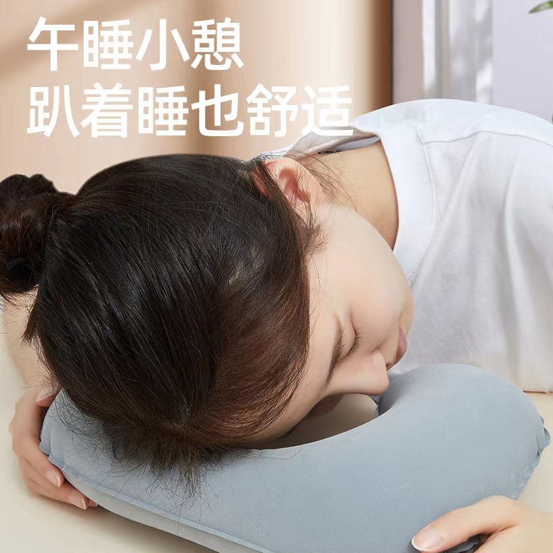 按压式充气u型枕旅行枕头便携颈枕吹气u形枕高铁长途飞机睡觉神器