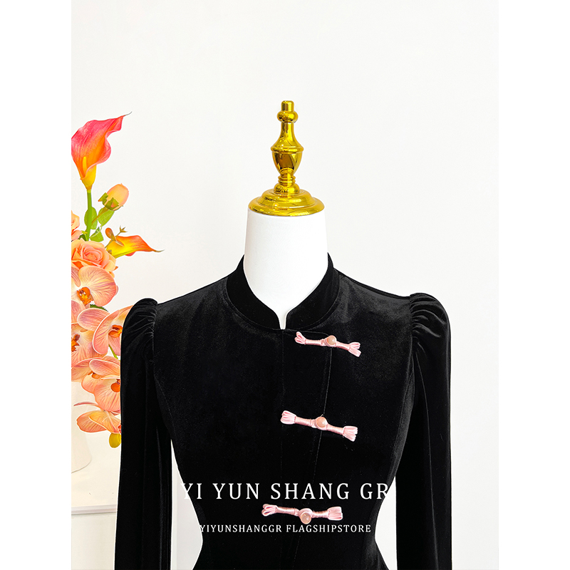 新中式国风改良旗袍连衣裙女秋季长裙小众复古设计感高端礼服裙子