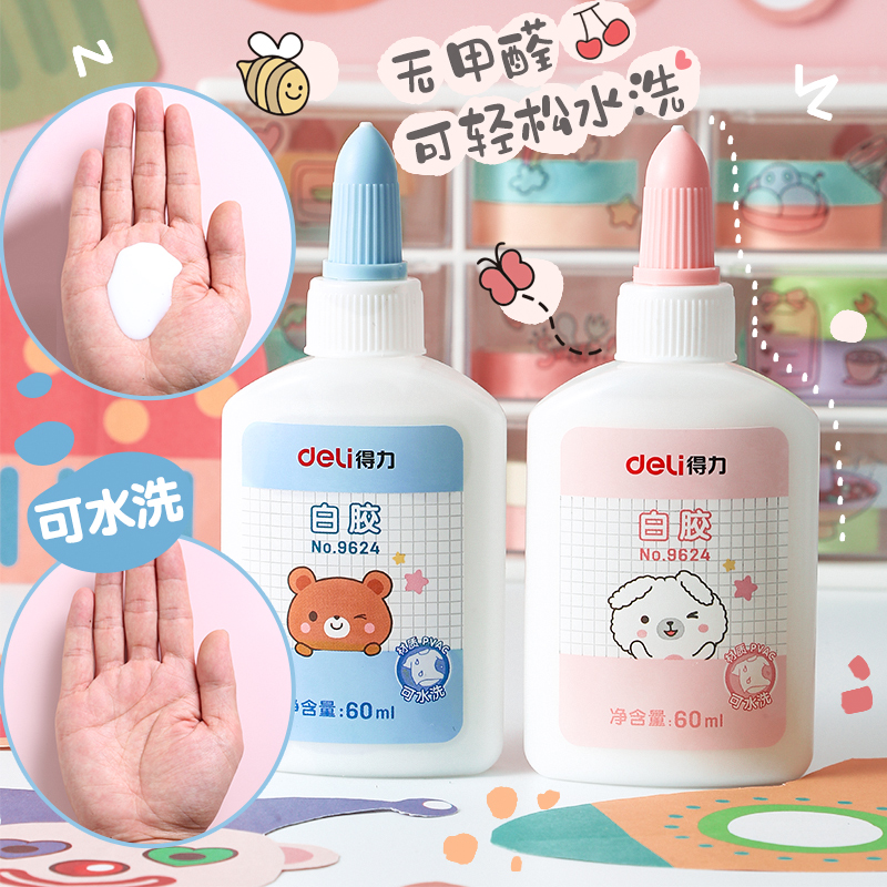 得力儿童手工白胶小学生液体胶水快干可水洗白乳胶DIY模型手工胶