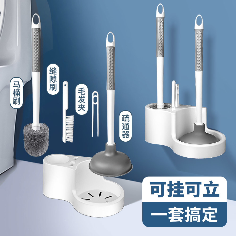 马桶刷疏通套装家用无死角皮搋子卫生间厕所刷子壁挂清洁神器底座