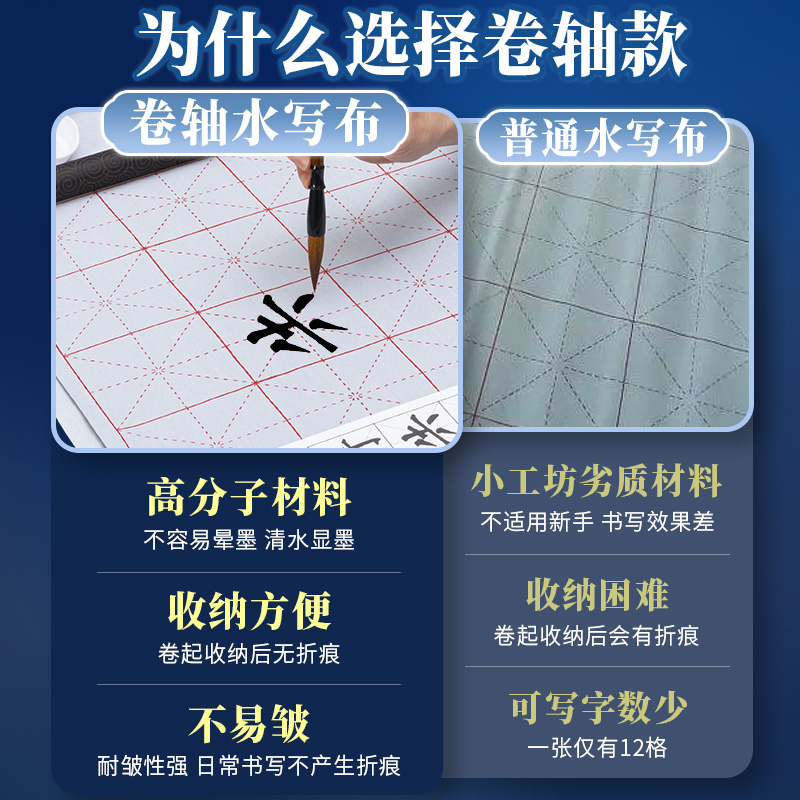 毛笔字水写布练字专用空白三年级小学生练习布米字格水写书法布初学者加厚高级仿宣清水练毛笔字大号万次速干