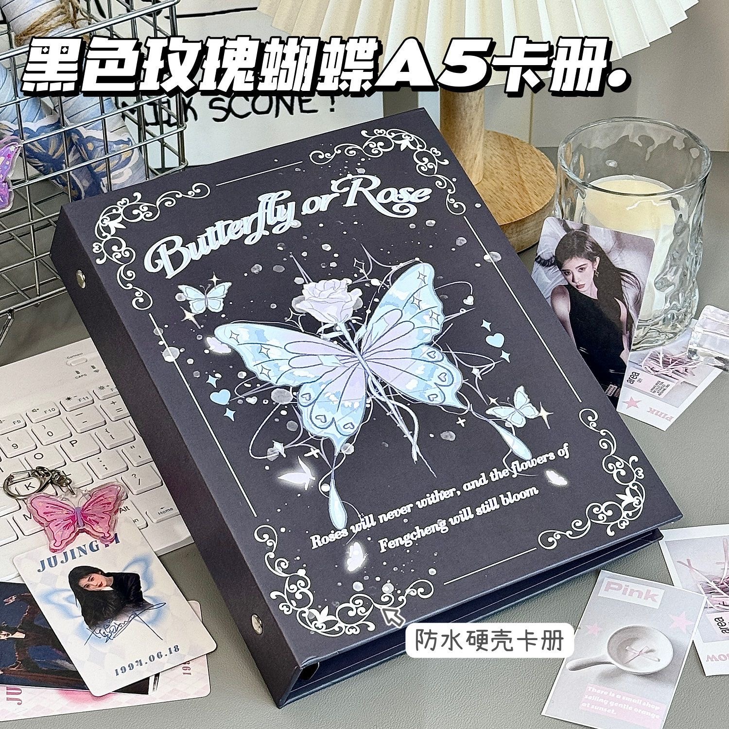 绝美蝴蝶玫瑰ins卡册活页四宫格高颜值超硬A5外壳追星卡收纳册