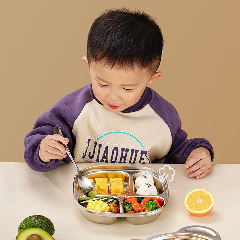 304不锈钢防摔餐具饭盒宝宝家用盘儿童餐盘3-10岁吃饭辅食进食