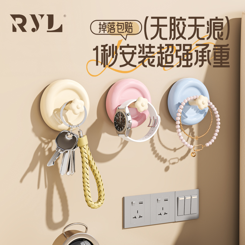 高颜值多巴胺挂钩真空吸盘免打孔厨房卫生间贴墙上门后承重粘钩