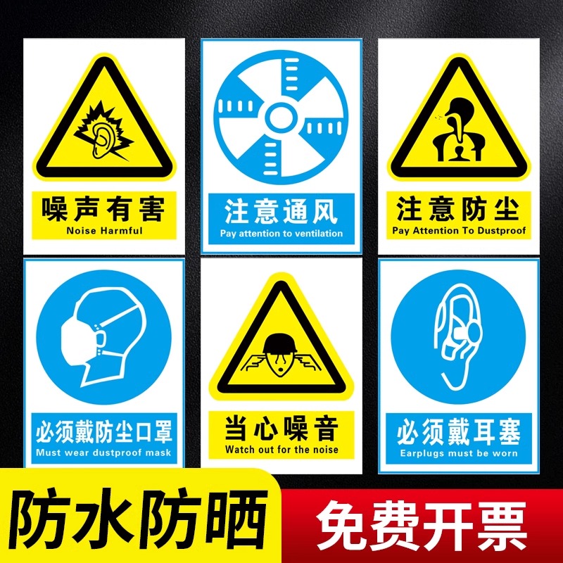 粉尘职业卫生警示标识牌 当心噪噪声 注意防尘高温必须穿防护佩戴口罩戴手套护耳塞塞职业病危害告知卡公告栏