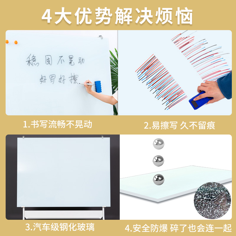 钢化玻璃白板磁性支架式写字板超白黑板墙贴家用办公室大白板挂式