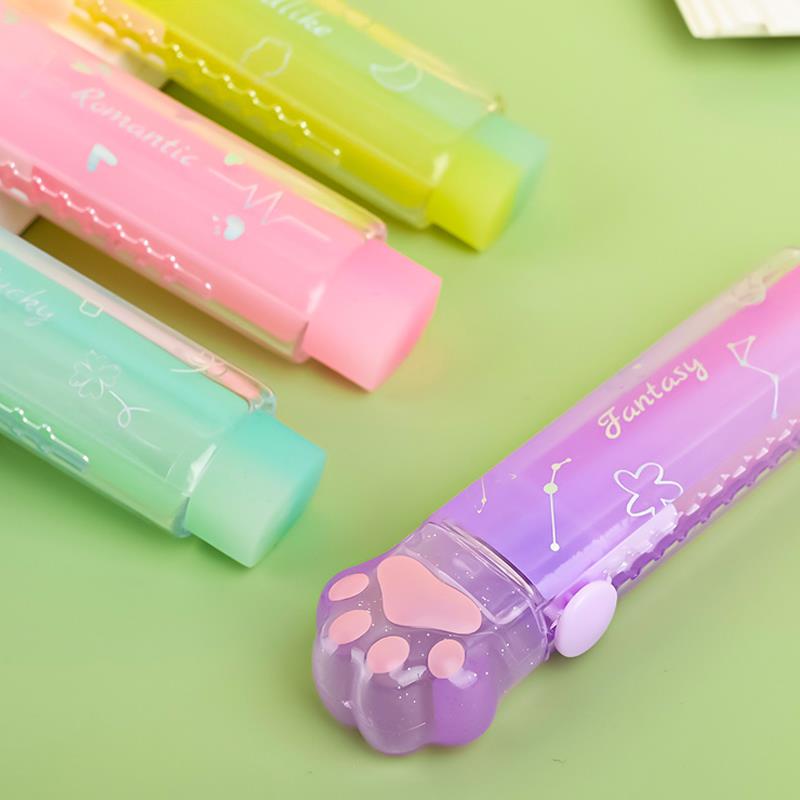 推拉橡皮猫爪橡皮擦渐变色小学生专用可爱卡通伸缩创意橡皮擦儿童推动幼儿园香味橡皮擦儿童开学文具学习用品