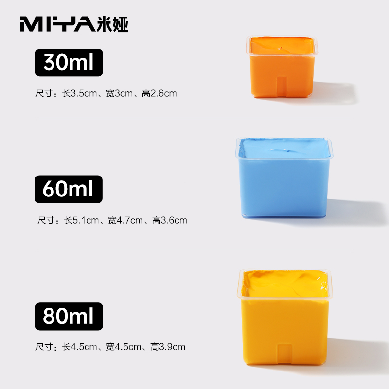 米娅水粉颜料补充包方杯80ml美术生专用怪诞米亚果冻颗装替换装