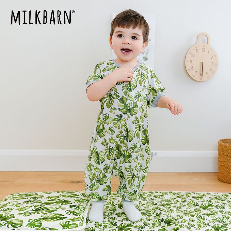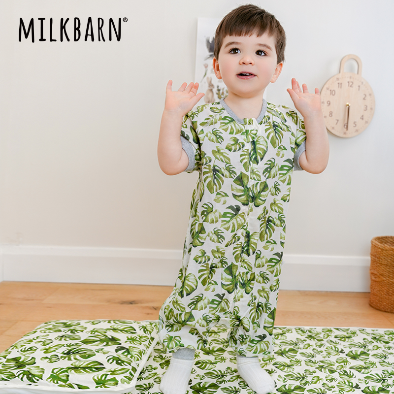 Milkbarn2025春夏新品婴儿短袖连体睡袋宝宝分腿睡衣儿童防踢被子