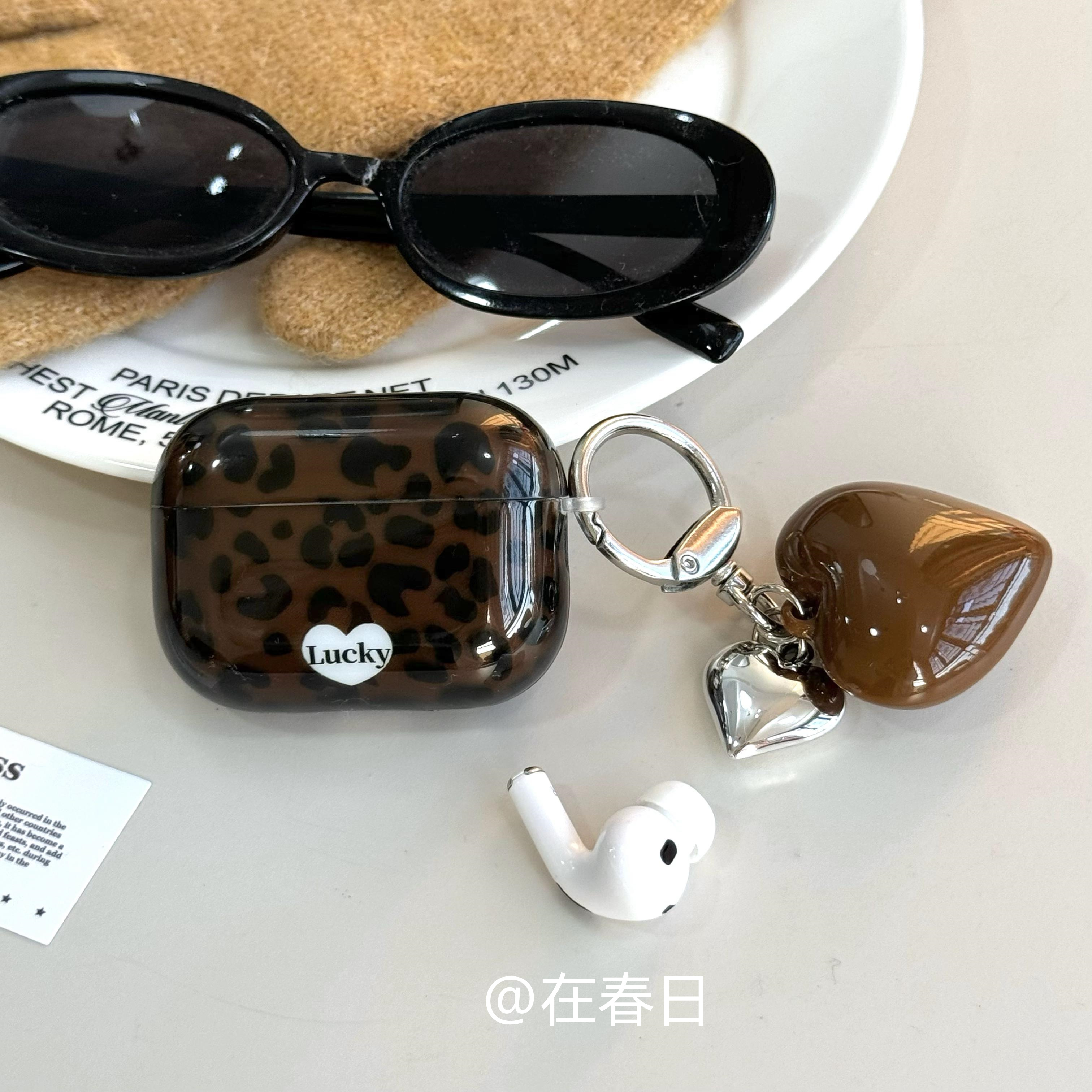 在春日ins韩个性时髦豹纹爱心耳机壳2代适用于airpods Pro2保护套苹果pro3代女生蓝牙耳机壳1/2代新款4代