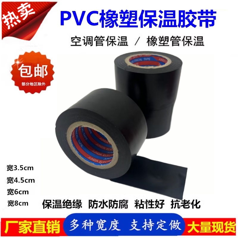 黑色PVC橡塑保温胶带电气绝缘胶带空调管胶带扎带缠绕带4.5cm6cm