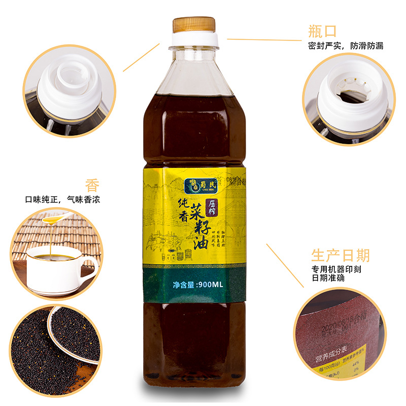 蜀民纯香正宗菜籽油非转基因农家压榨菜油小瓶0.9L1.65斤家用熟榨