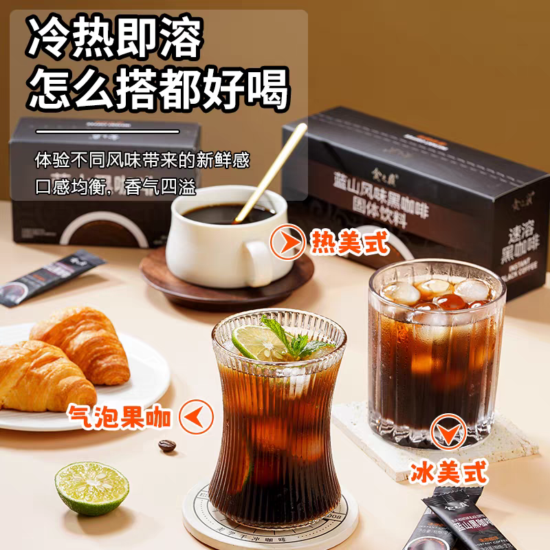 食之巅蓝山黑咖啡速溶0脂正品0学生健身美式燃减咖啡粉咖啡豆饮料