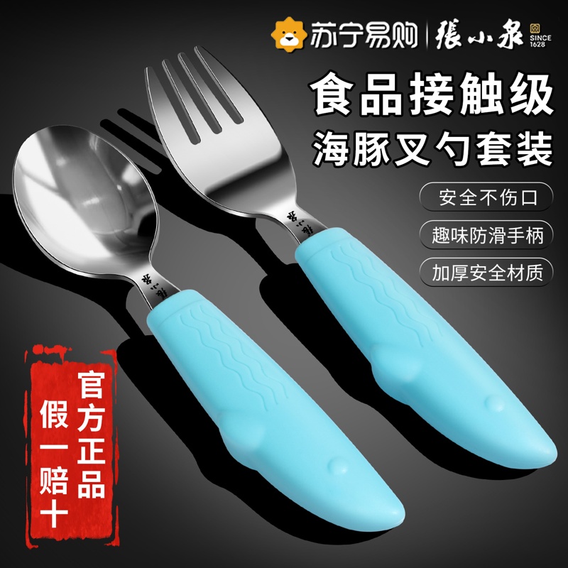 张小泉儿童勺子餐具套装婴儿辅食叉子304不锈钢吃饭训练叉勺安全