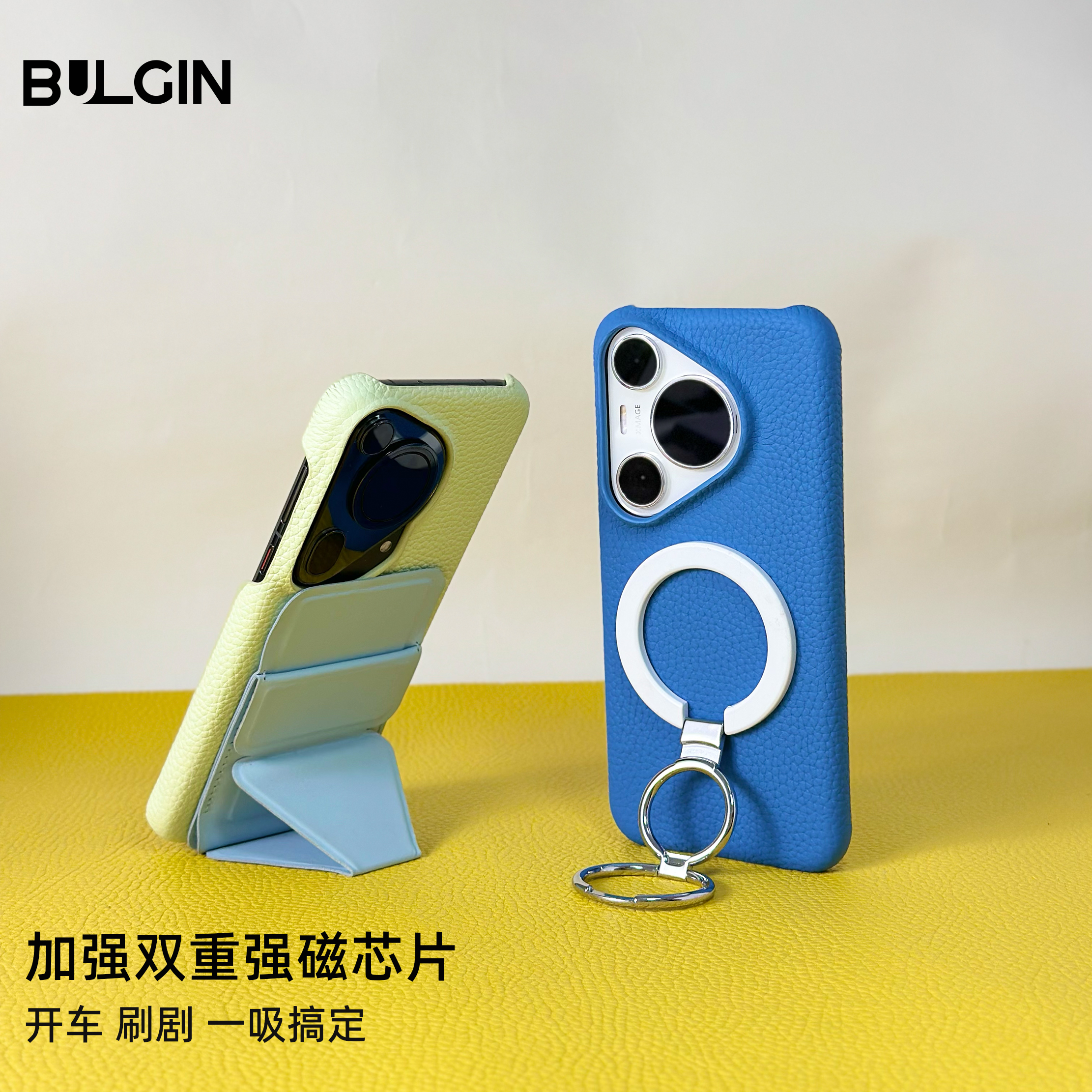 BULGIN适用华为Pura70Ultra皮质手机壳真皮磁吸pura70pro真皮保护套新款高级荔枝纹牛皮防滑半包散热男女商务