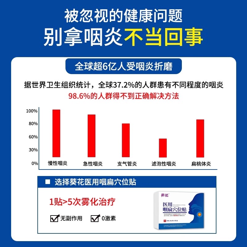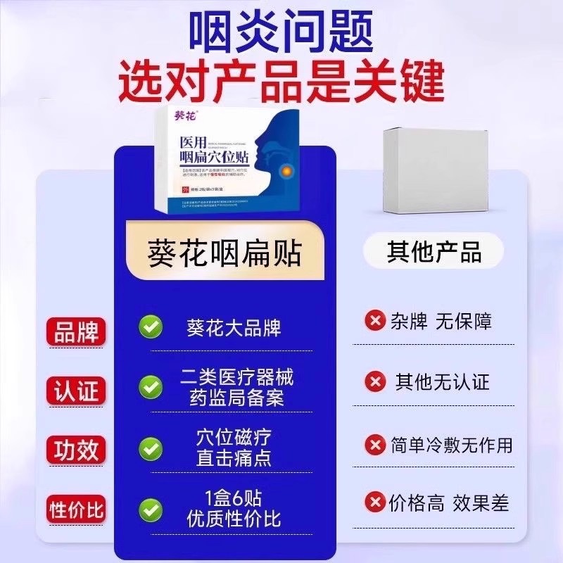 葵花咽扁穴位贴咙发炎急慢性肿痛痰异物咽喉炎砭贴正品咽炎戒烟