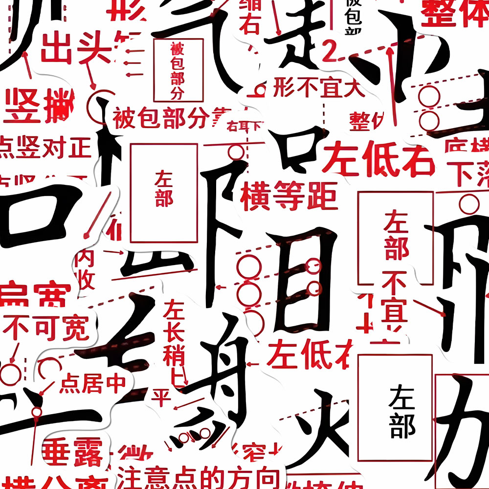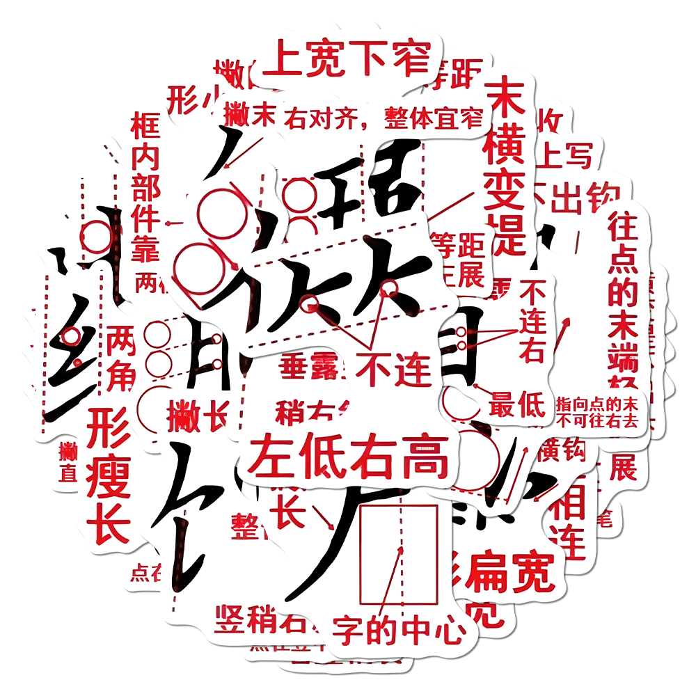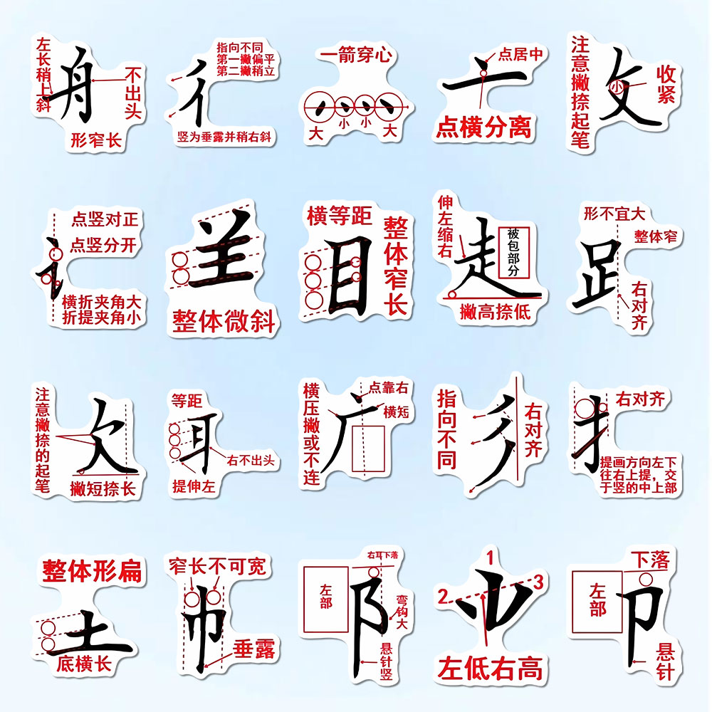 150张新款硬笔书法楷书偏旁部首基础笔划分解每日一练防水贴纸