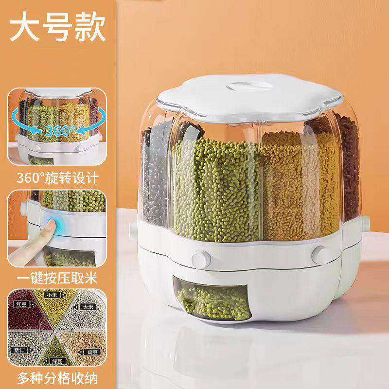新款家用米桶厨房粮密封储米箱米桶爆款分格可旋转五谷杂粮桶米缸