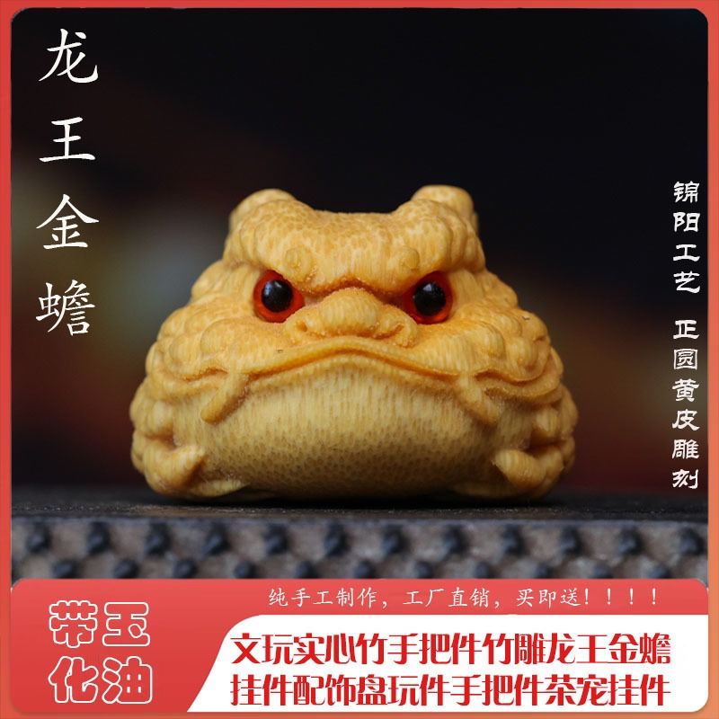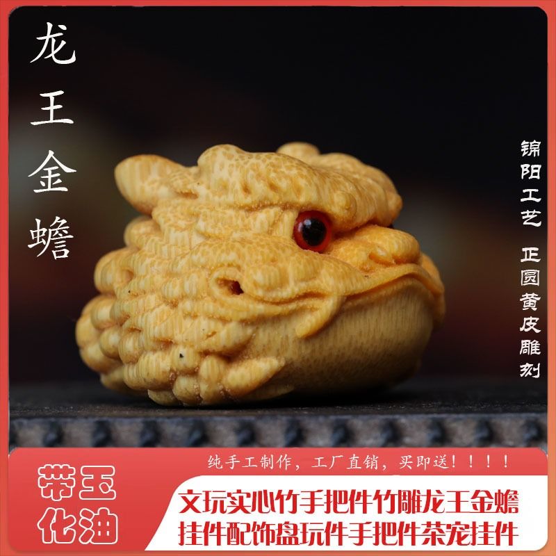 实心竹金蟾手把件竹雕精品高密度玉竹龙血竹文玩摆件收藏爆款玉化