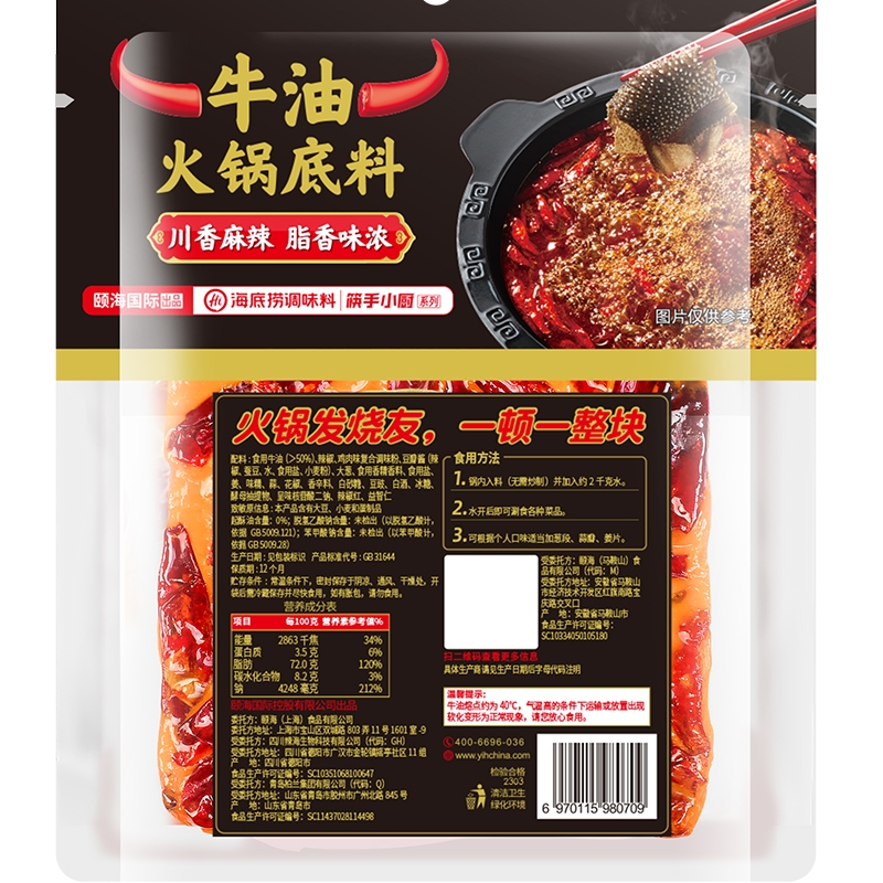 海底捞火锅牛油麻辣火锅底料500g四川成都火锅冒菜调料家用调料
