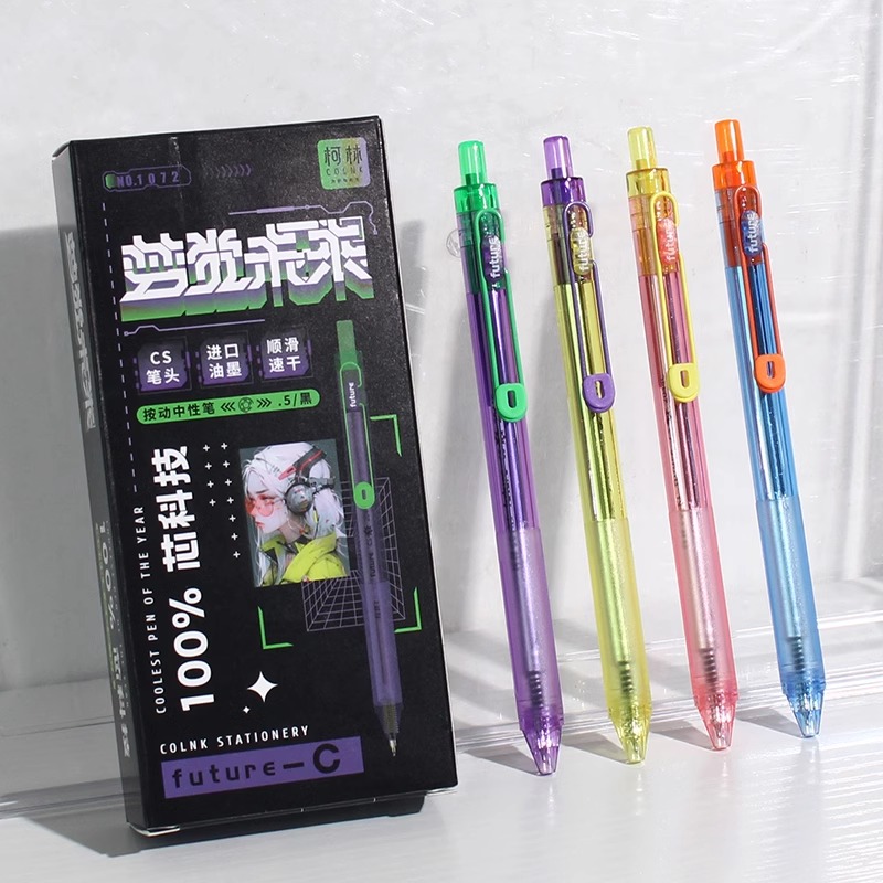 柯林梦觉未来中性笔赛博朋克限定按动中性笔学生用考试笔速干顺滑CS头刷题专用0.5mm黑色签字笔高颜值cs笔尖