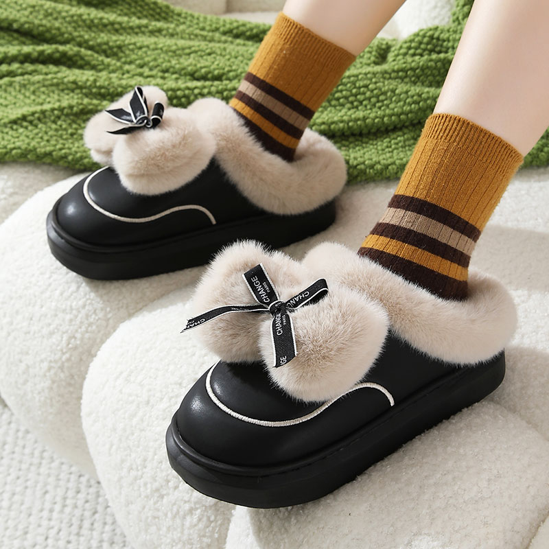 棉拖鞋女冬季2025新款蝴蝶结防滑毛毛拖鞋室内家居加绒保暖棉鞋女