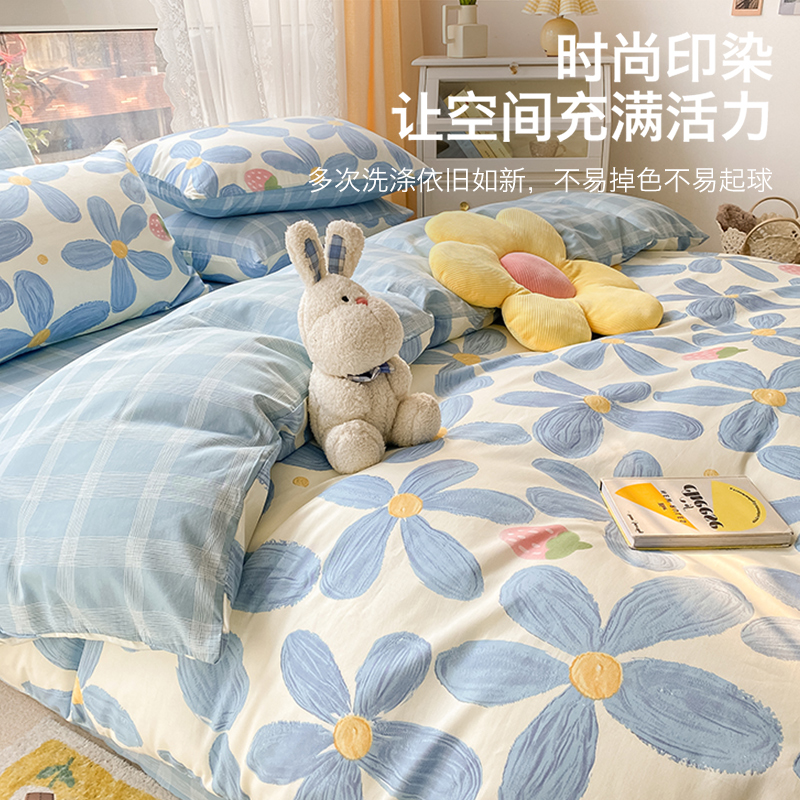 ins四件套被套被罩床单床上用品学生宿舍单人非纯棉全棉三件套秋4