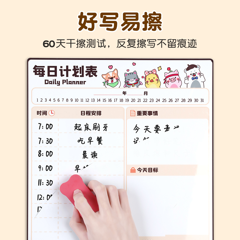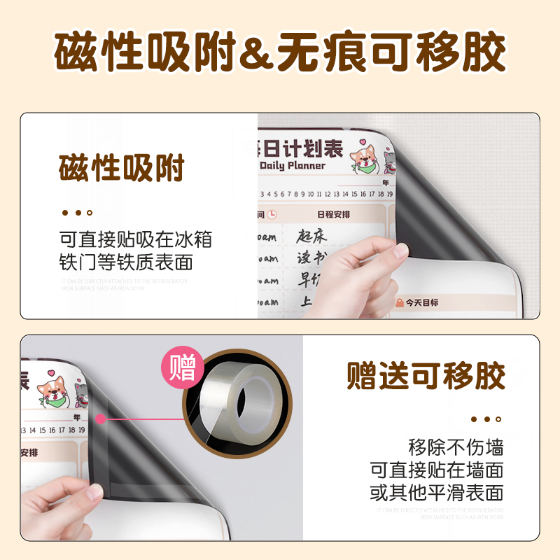 好习惯养成墙贴暑假学习计划表日历儿童成长自律打卡磁性日程表时间管理家庭课程每日作息安排月周任务完成表