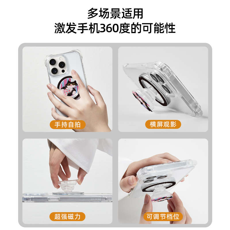 头巾猫手机气囊支架磁吸便携折叠伸缩新款网红原创小猫可爱桌面支撑可调节看剧便携女款时尚追剧吸附