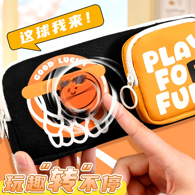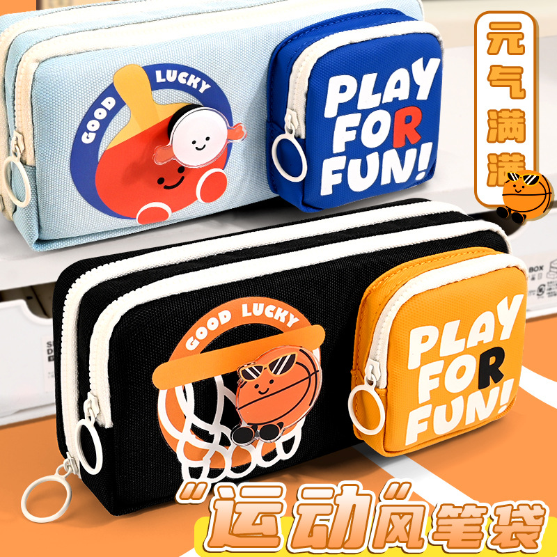 运动风帆布小众笔袋双层大容量高颜值简约文具袋小学生男孩