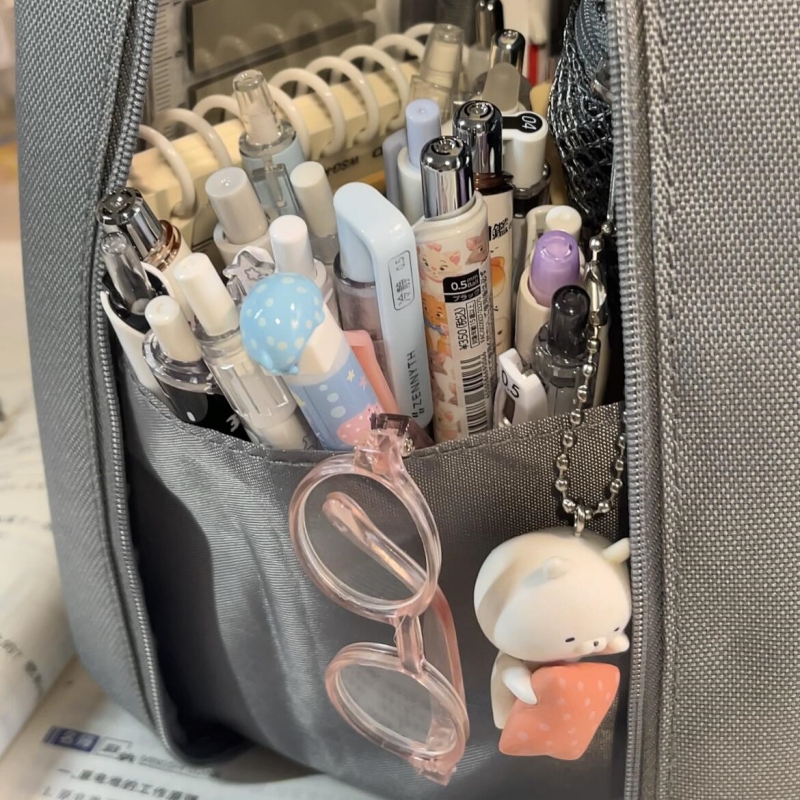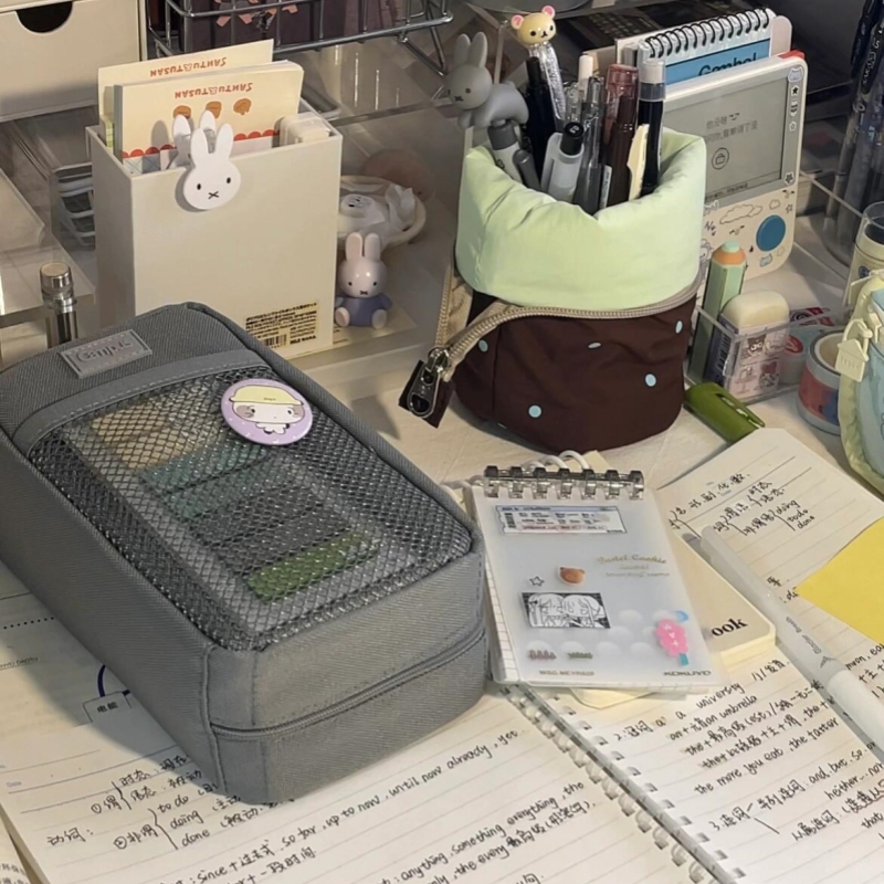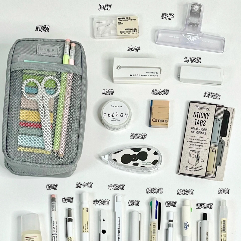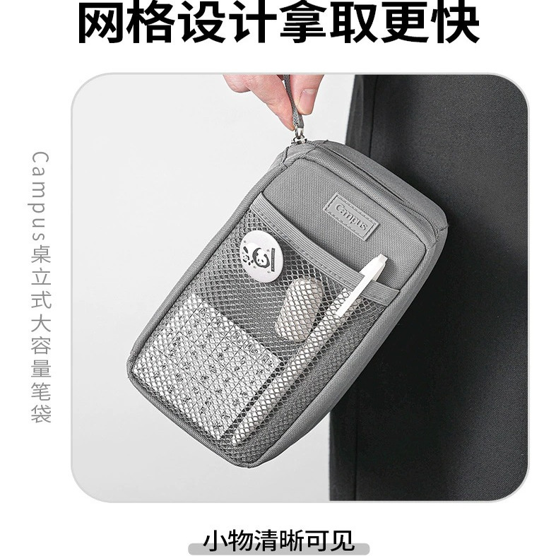 2025新品国誉Campus桌立式小冰箱开门笔袋高颜值学生便携收纳盒文具袋网格手提便携男孩女孩通用小学大容量