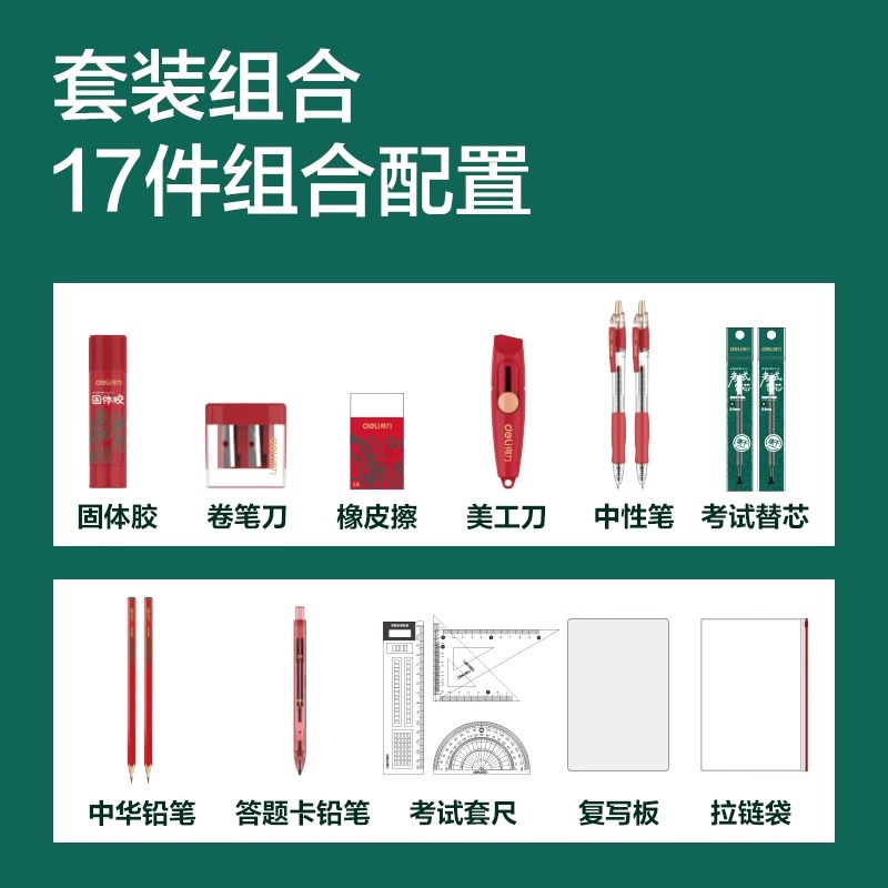 得力中华联名考试用文具套装中高考考研考公研究生成人考试高考中考用2b铅笔涂卡笔答题卡考试笔一二建公务员