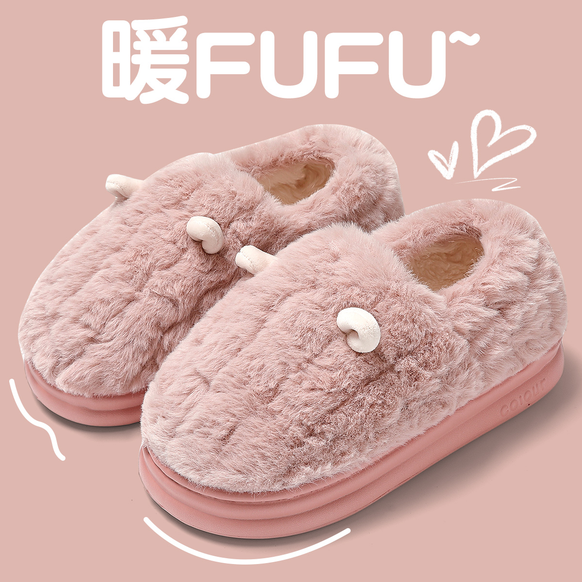 红豆棉拖鞋女室内包跟冬季保暖防滑厚底居家冬天拖鞋男鞋全包毛绒
