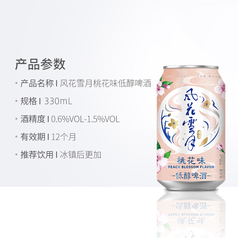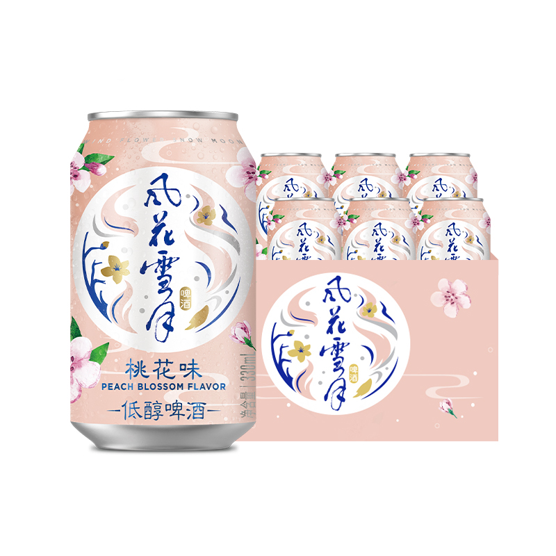 听装桃花/柠檬味低醇轻酿啤酒330ml*6罐风花雪月果酒清仓非原箱