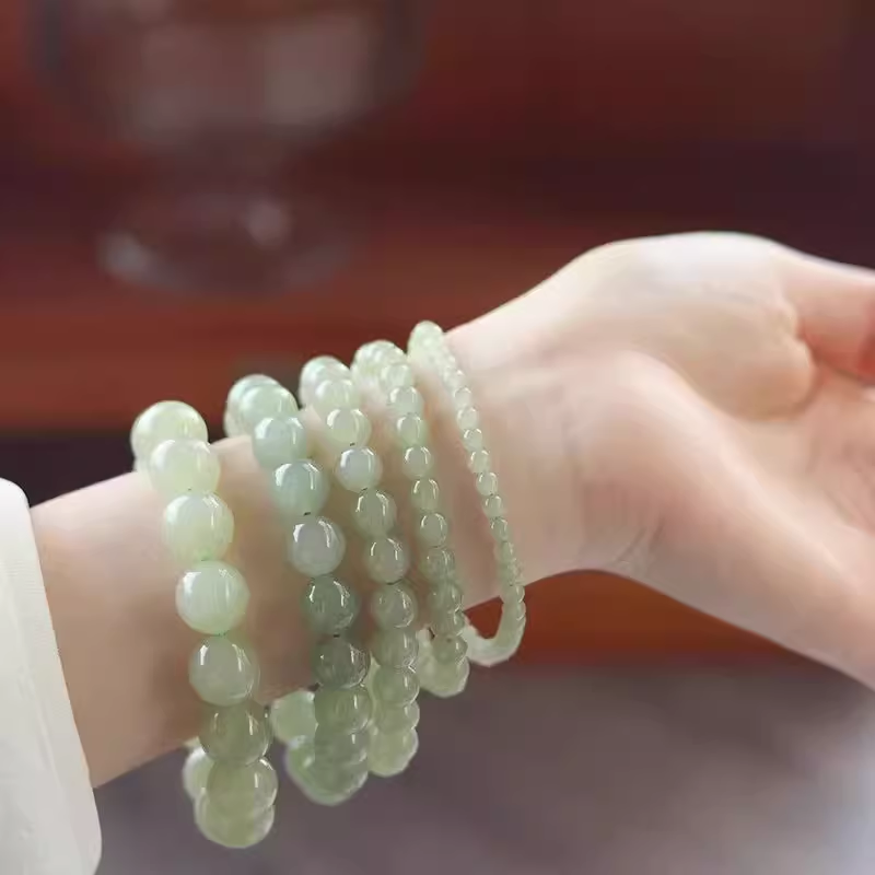 新疆和田玉散珠仿同款绿圆珠子DIY手串饰品手链配件配珠玉珠玉髓