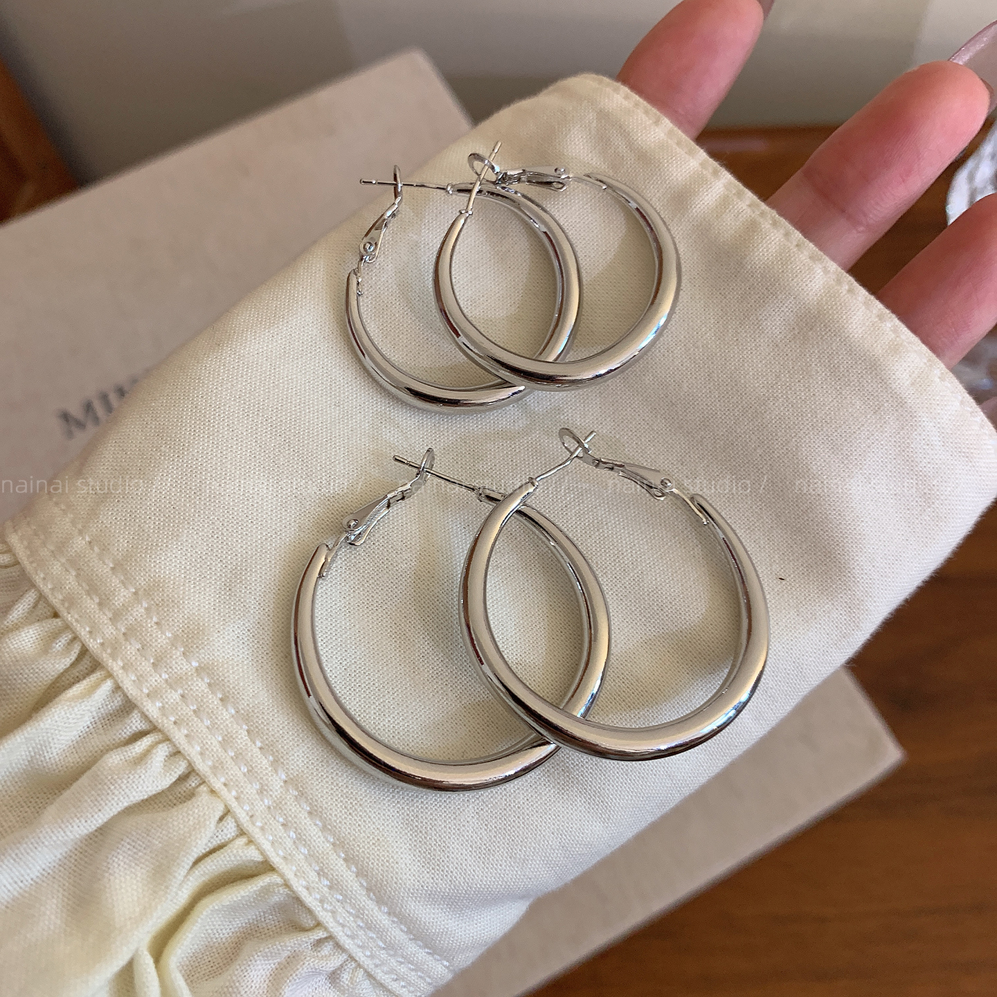 银色素圈大耳圈女2025新款爆款方圆脸大圈耳环轻奢高级感圈圈耳饰