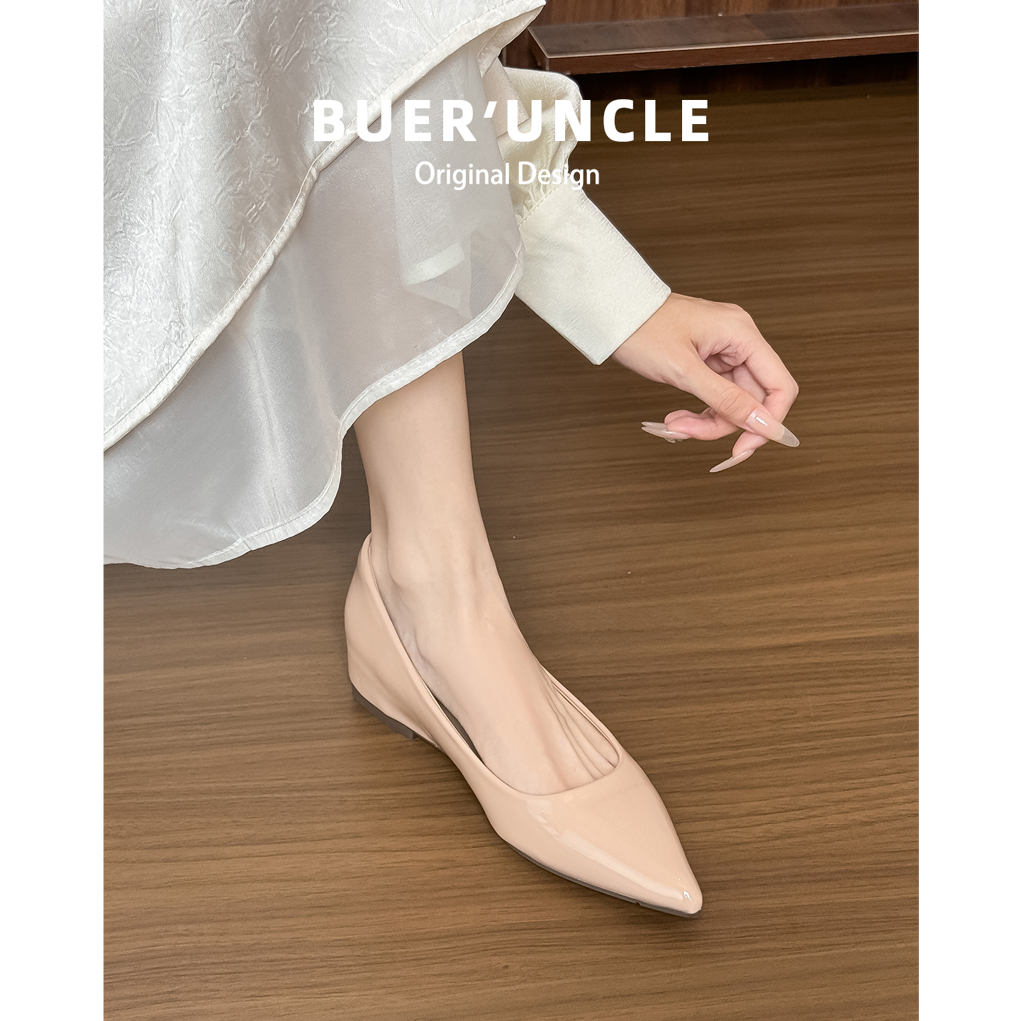 羊皮!内增高法式尖头裸色单鞋女2025新款平底浅口气质玛丽珍女鞋