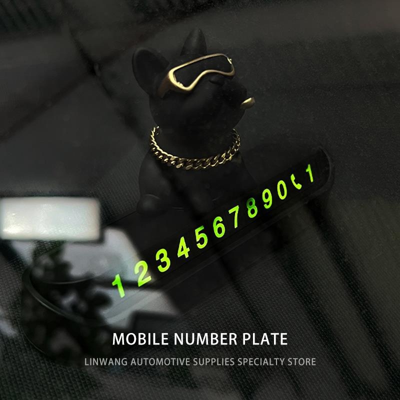 个性法斗犬停车号码牌车载摆件临时挪车电话牌移车牌汽车用品高端