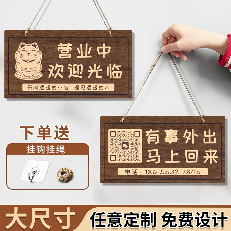 有事请拨打电话挂牌离开一会儿马上回来外出送货店主就在附近双面仿木复古创意营业中有事外出告示牌提示牌子